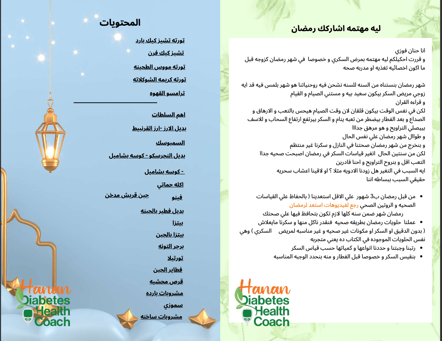 رمضان فرصة رائعة لتحسين صحتنا، لكن للأسف الحلويات والمغريات فيه ممكن تسبب ارتفاع السكر، تعب، وإرهاق يؤثر علينا بشكل كبير. مع ذلك، اكتشفنا إننا نقدر نتغلب على كل ده لو استعددنا لرمضان بشكل مسبق، وركزنا على أكلات صحية تخفف الحرمان وتساعدنا نحافظ على سكرنا، ونستمتع بالصلاة وبكل تفاصيل الشهر.