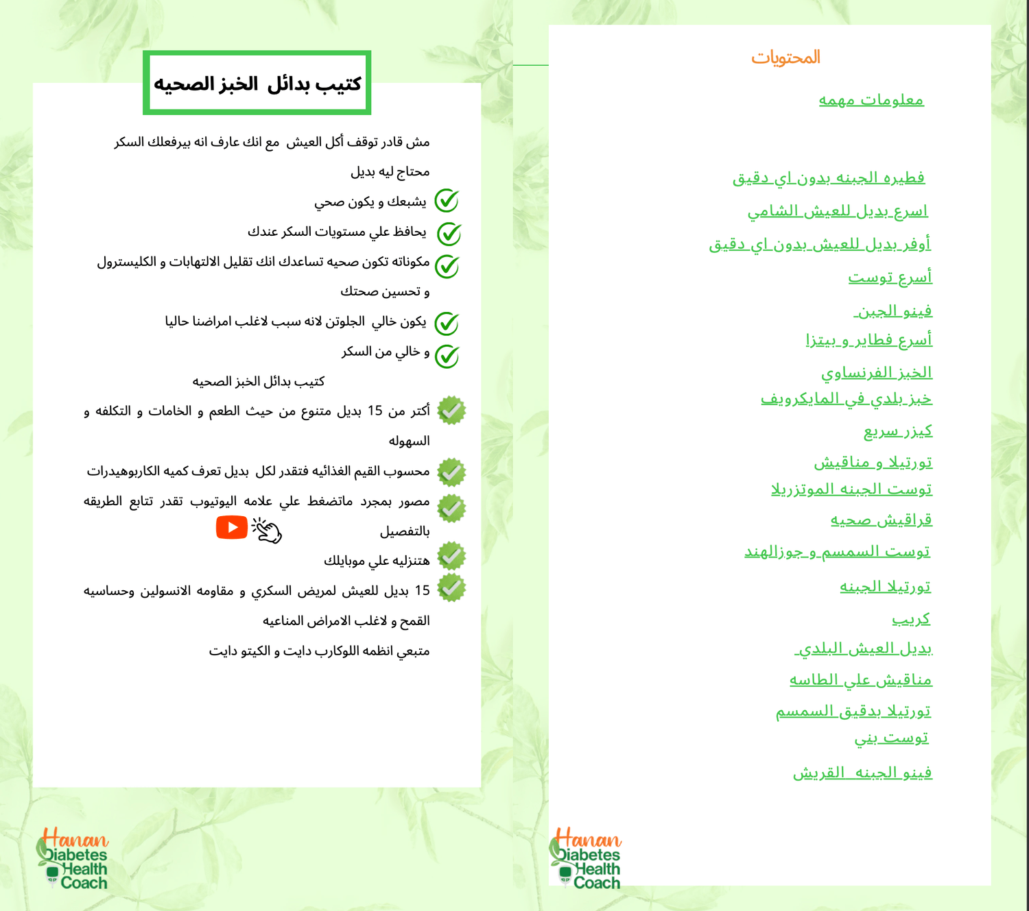 لاكتمال رحلتك للتغذيه الصحيه لمريض السكري و مقاومه الانسولين أطلب نسختك من كتاب البدائل الصحيه للخبز